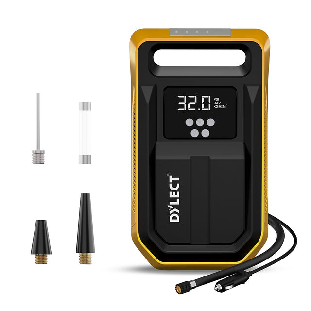 - User-Friendly Operation: The Dylect Tyre Inflator showcases an ergonomic design, weighing just 0.85 kg for effortless handling. Its 3 Meter 12V Cord ensures convenient reach to all four tires. Users benefit from easy connectivity, a versatile LED light system with three modes, and a user-friendly digital display, allowing hassle-free operation.