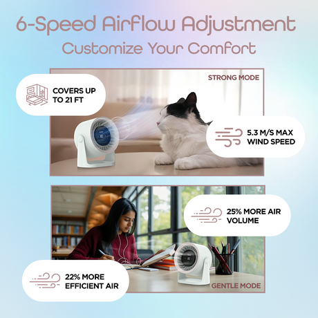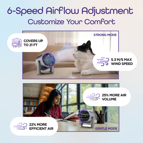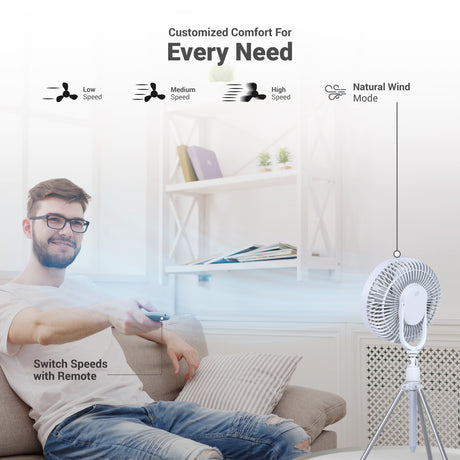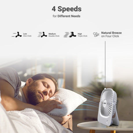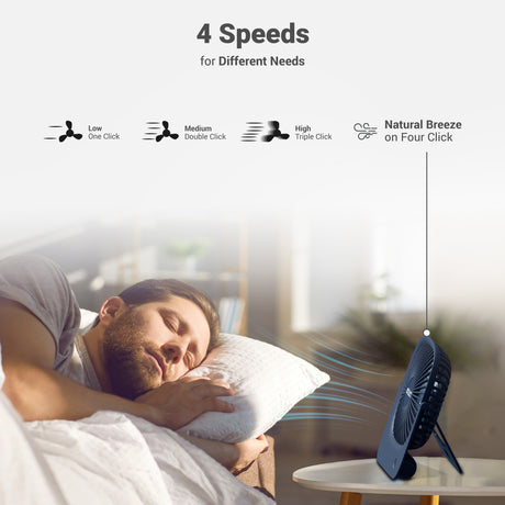 Multiple speed settings (low, medium, high, natural breeze)
