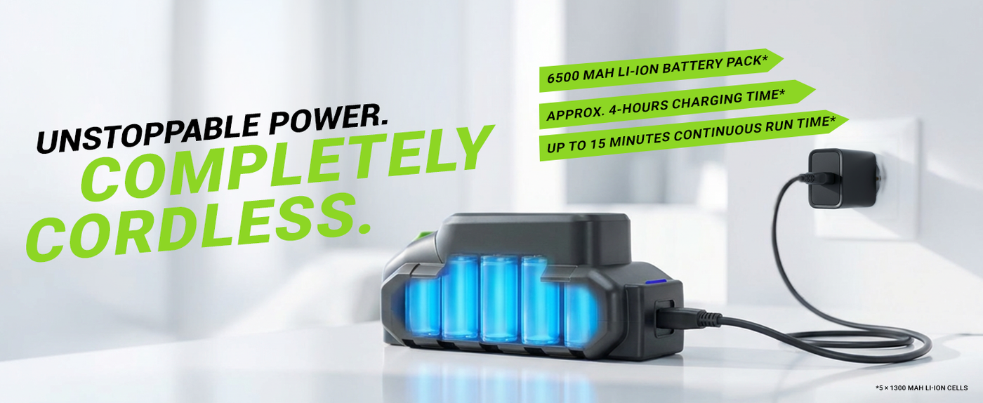 - Cordless Power with Long-Lasting Battery - Powered by 5 premium Li-ion cells (6500mAh) for strong runtime, safer charging, and extended battery life.