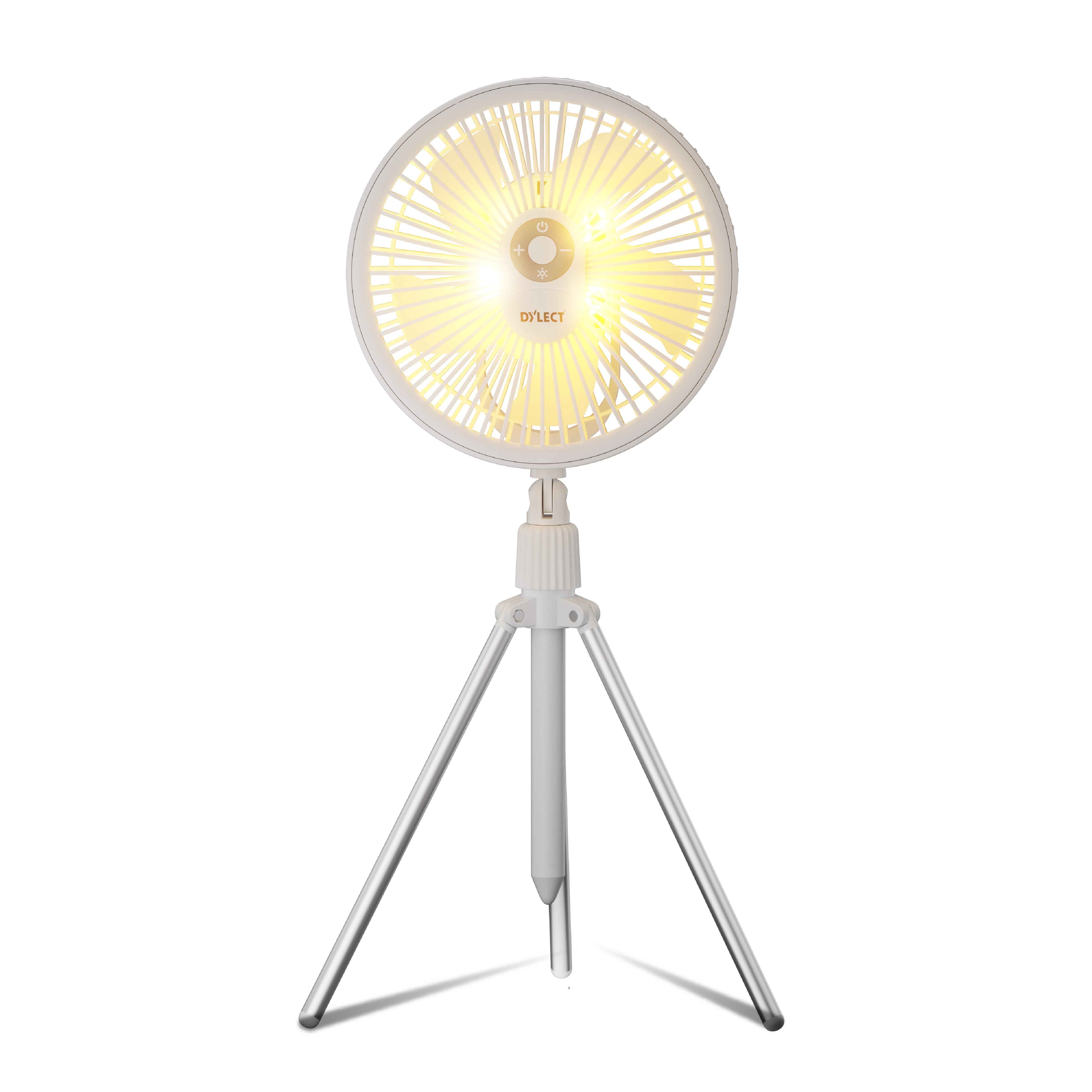 - LED Light with Adjustable Brightness & Tripod Stand: Equipped with a built-in night light, this charging fan with light is perfect for low-light areas, bedtime reading, or during power outages. The flexible tripod stand allows placement anywhere — on desks, counters, or bedside tables. It’s a smart cooling fan with light and flexibility.